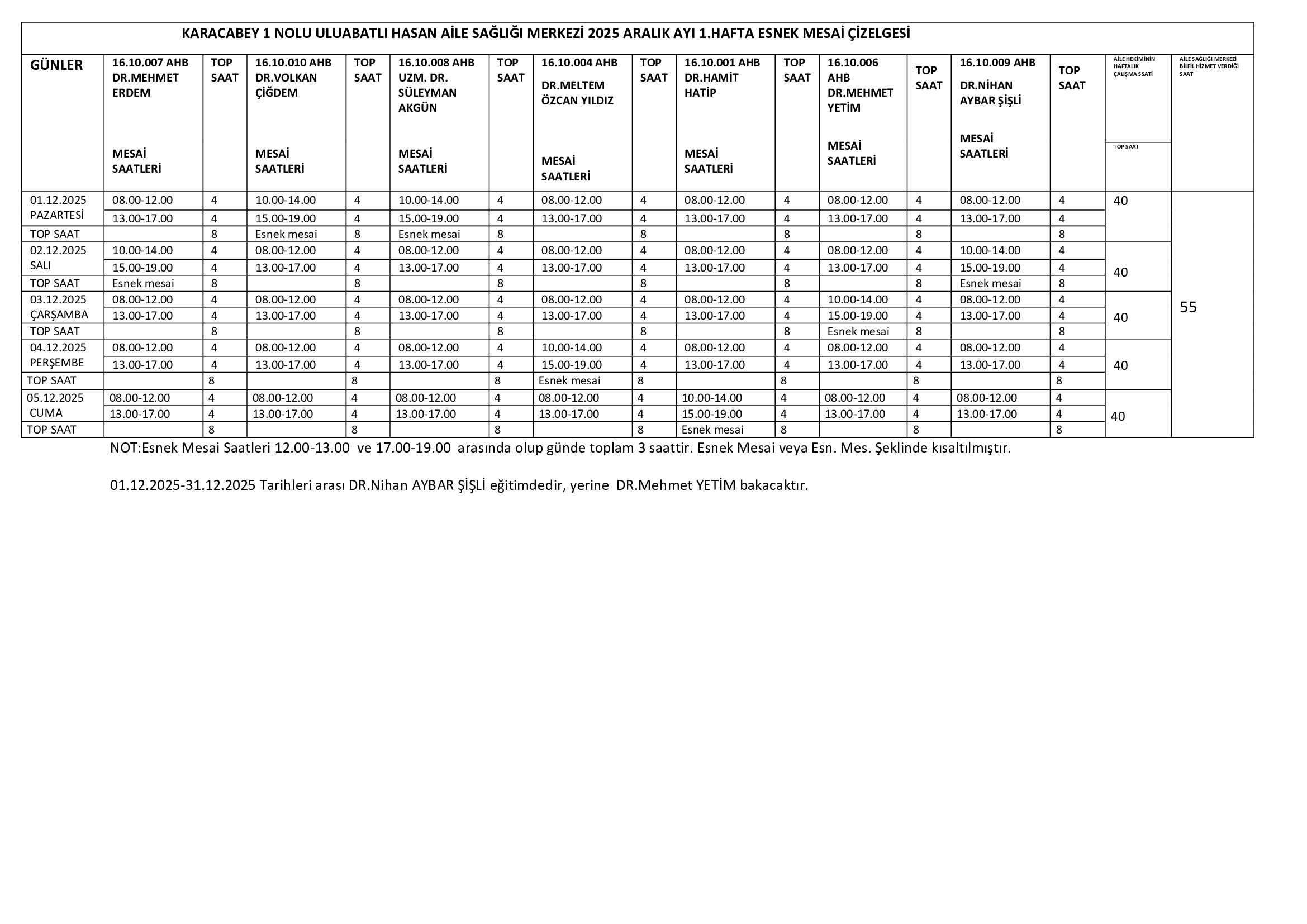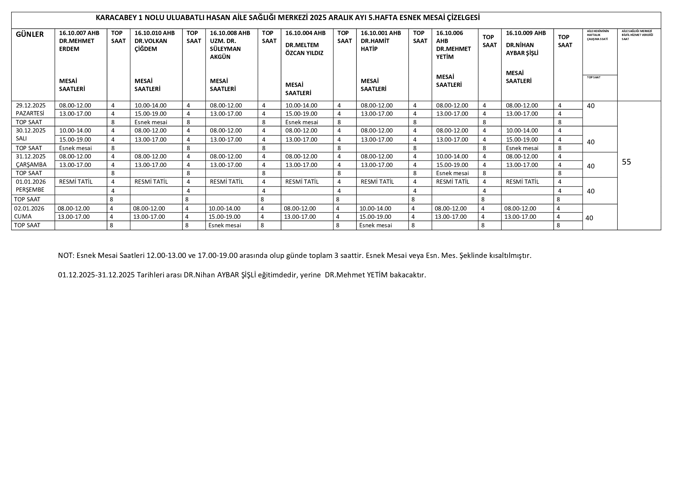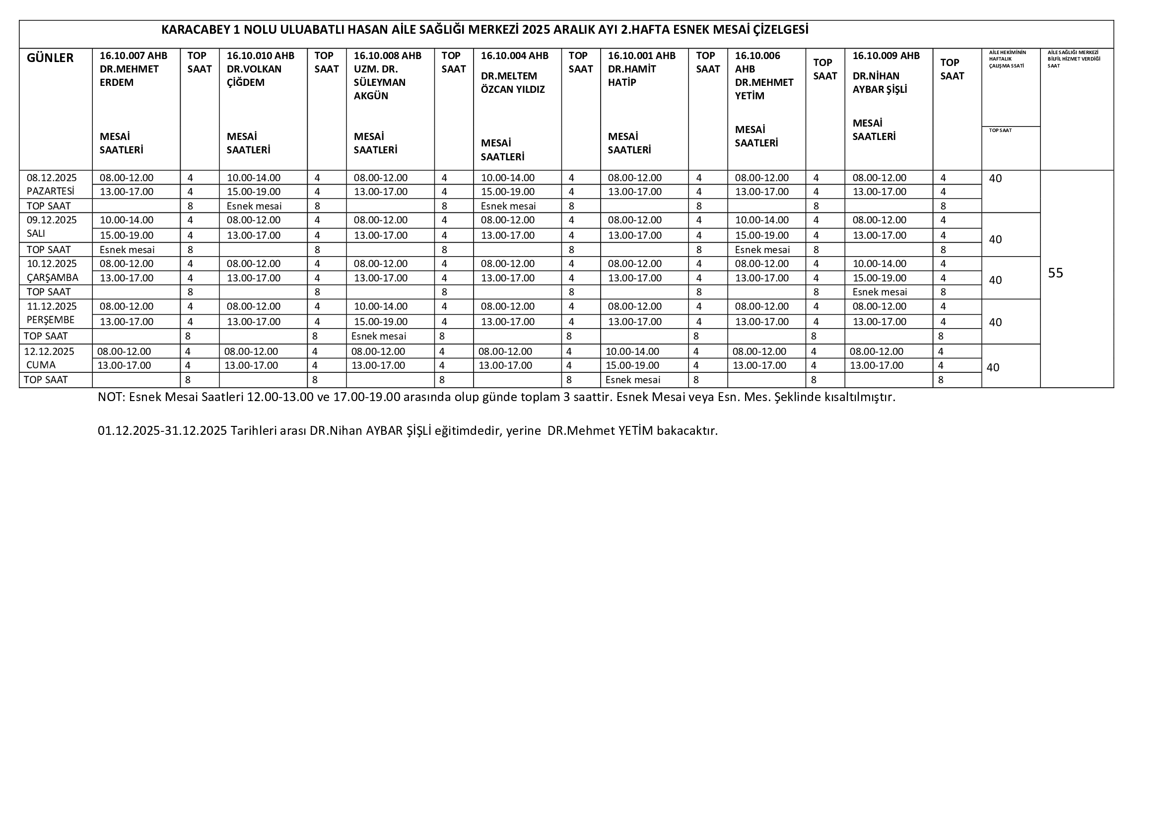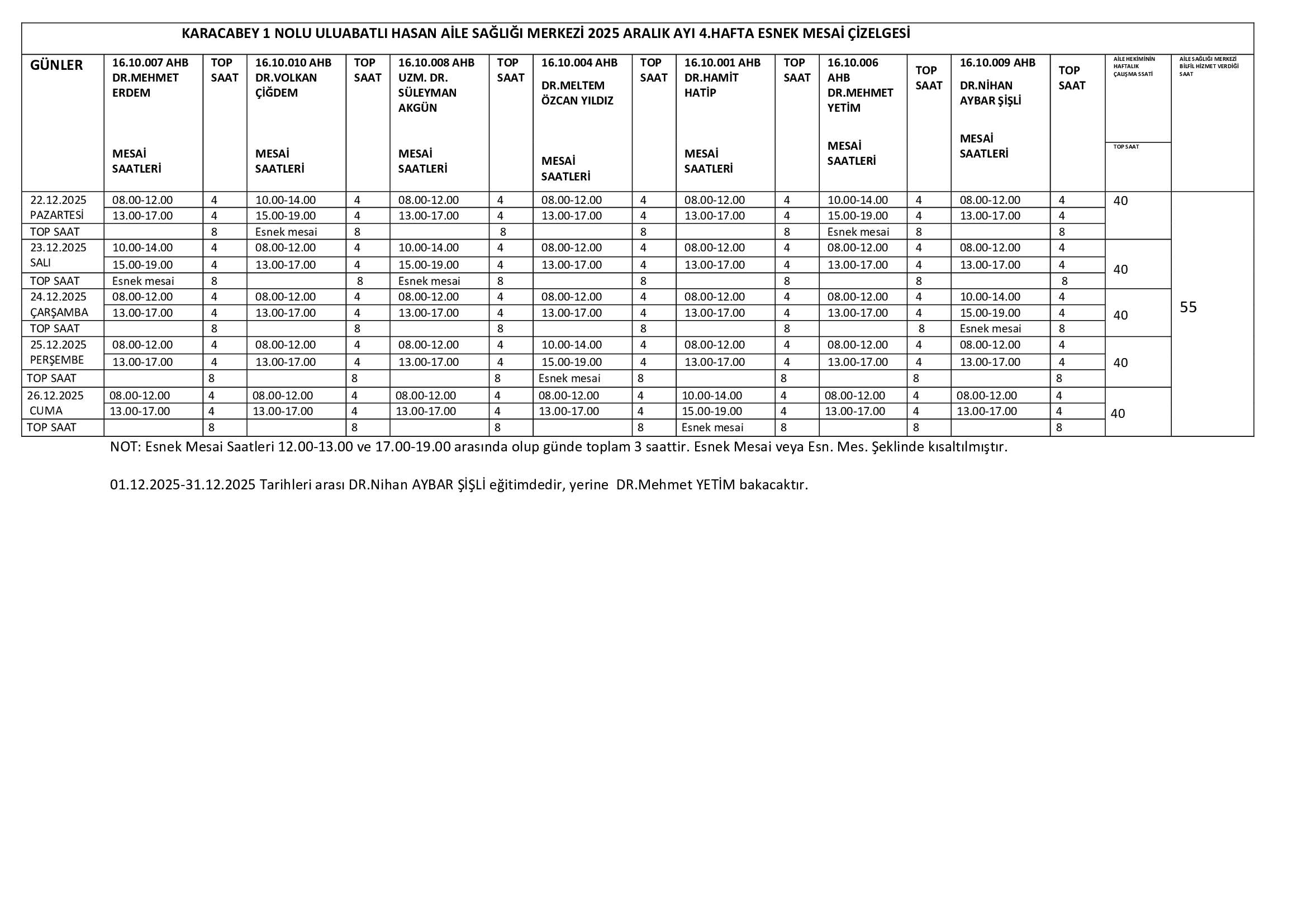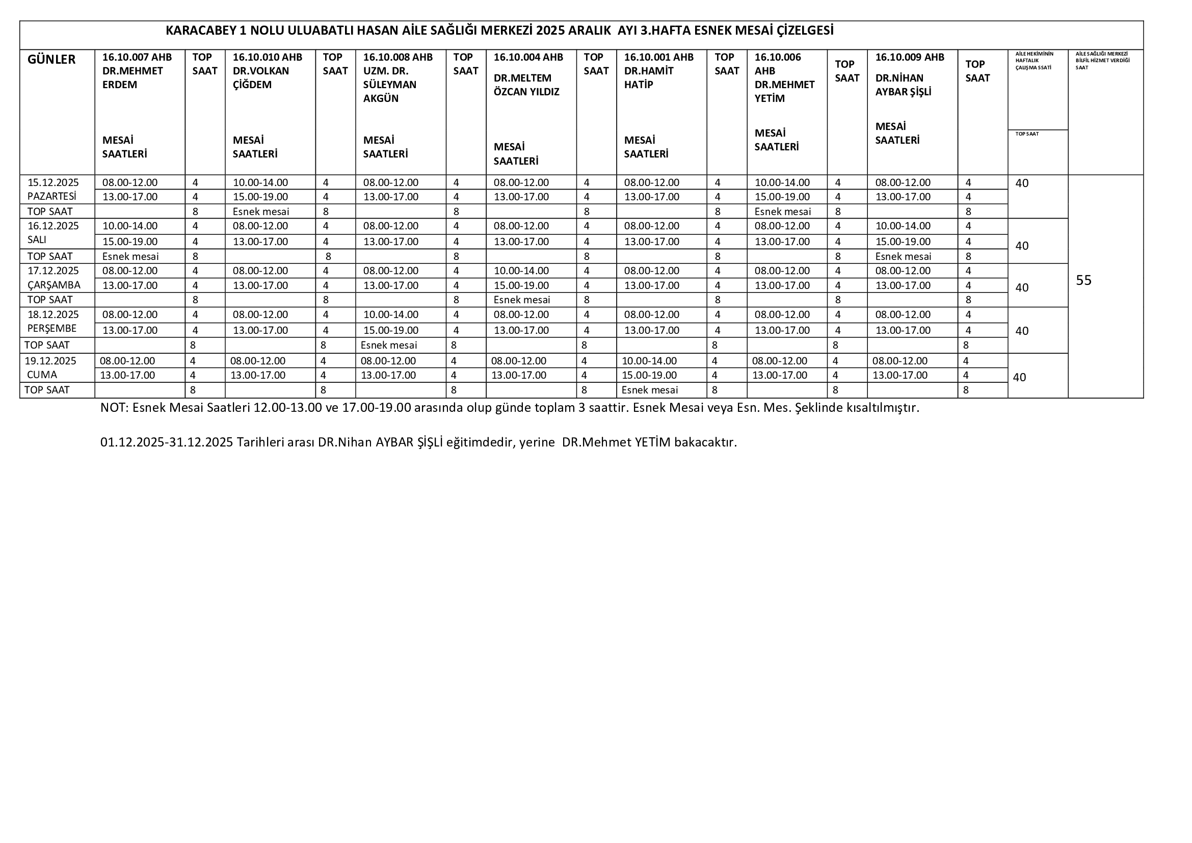 Çalışma Saatlerimiz